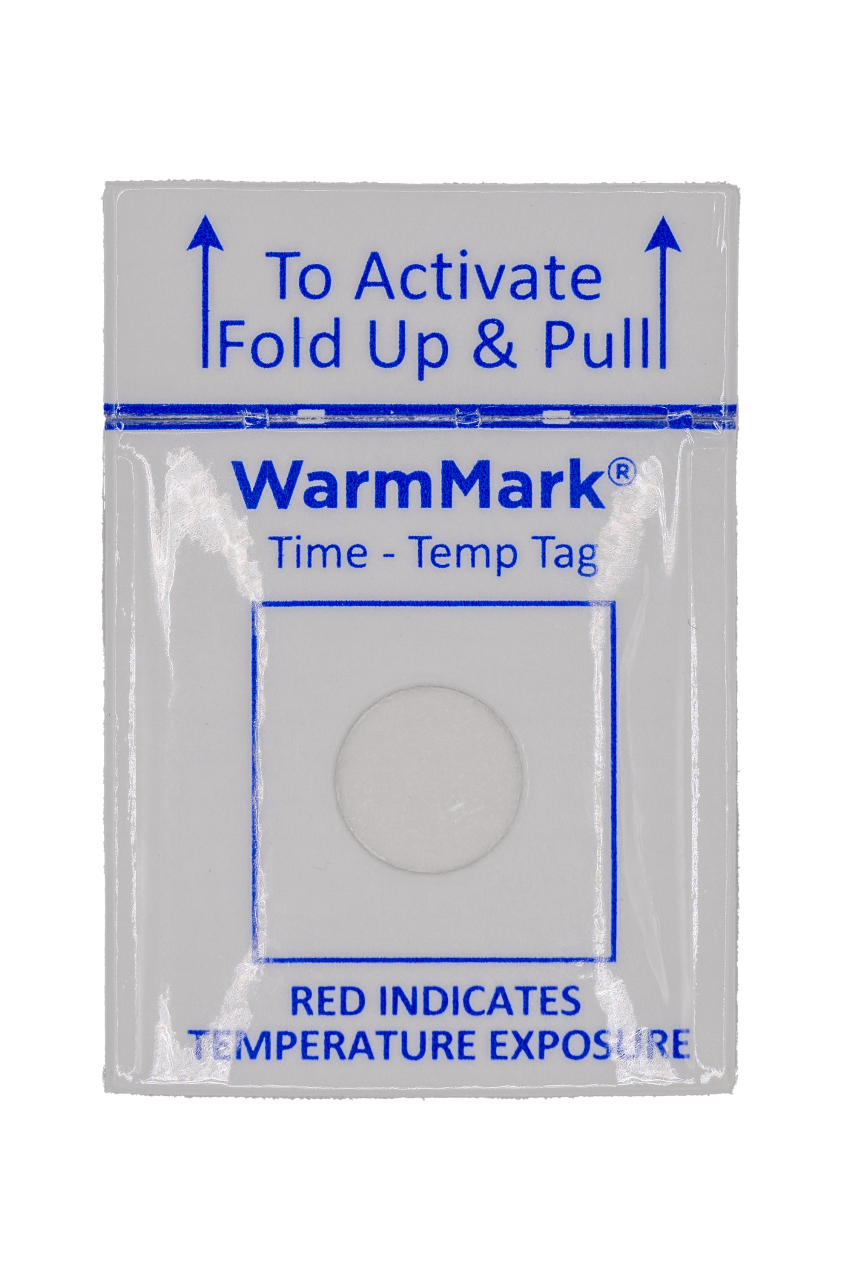 WarmMark® Mini indicators use a calibrated chemical reaction to detect cumulative temperature exposure above the rated threshold. When exposure above that threshold occurs for long enough to represent a meaningful excursion, the indicator changes permanently, providing a simple visual record that an out-of-spec temperature event has occurred.